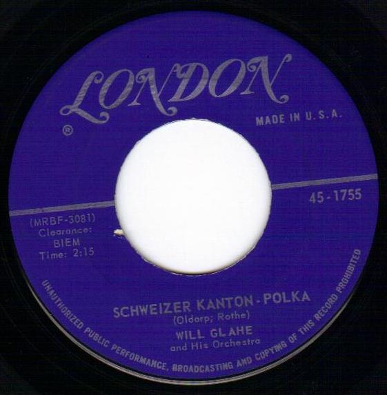 In the new year, another nice find of bobsluckycat has found its way onto this blog. Will Glahé is also familiar with many listeners in the USA, being the "King of Polka" there for several years. This record, released on London Records, is from 1957 and was one of his last big hits.